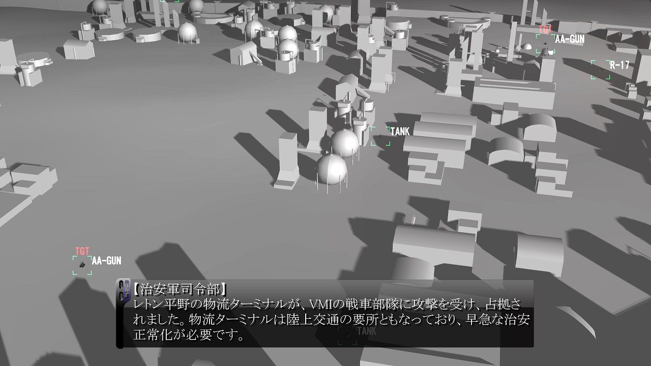 第3テラストラクチャーの郊外に位置する飛行場を拠点にして仕事を請け負う民間のRaidersドライバー、エレア・サウスラインは、危険な業務に就くために武装を許された特務ライセンス保持者だ。ある日彼女は、武装集団に占拠されてしまった研究施設から荷物を取り返してほしいという依頼を受ける。敵の隙を付いて荷物をピックアップしたが、その帰り、武装規制区域において所属不明のRaiders部隊に襲撃されてしまう。救難信号を発信したが、VMIと軍の両者が居合わせた事で銃撃戦に発展。ついには全面戦争に突入してしまう……。